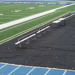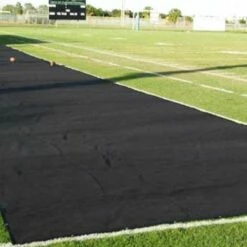 The Aer-Flo 3669-G, 7.5’x50′ cross over zone track protector cushions against cleats, shoes and equipment wheels. Significantly lighter and easier to handle than the βconveyor belt rubberβ sections that schools use for lack of a better alternative. The tough polypropylene geo-textile material resists and cushions against steel tipped cleats, shoes, and even grounds equipment wheelsβ¦yet rain drains through! The entire edge is wrapped in vinyl with a galvanized steel chain inserted all around, keeping the protector in place and virtually wind-proof without the use of stakes or staples.