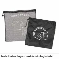 The Champro football carry bag measures 31″L x 20″W x 13″H and is large enough to hold up to 12 full size footballs. This water-resistant bag is built with durable 600D polyester with an inner lining to protect your footballs. The bag features a large D-zipper pocket for quick access to your gear and individual ball compartments to store your footballs and keep them upright for easy access. Two side zipper pockets provide added storage. A web handle and detachable shoulder strap allow for easy transport.