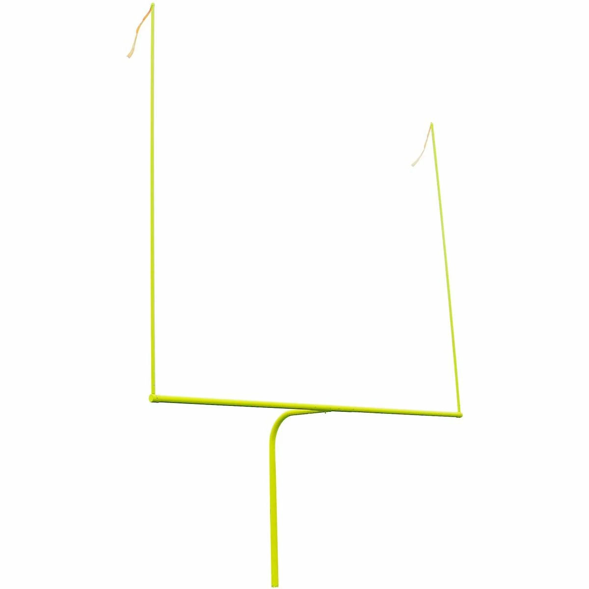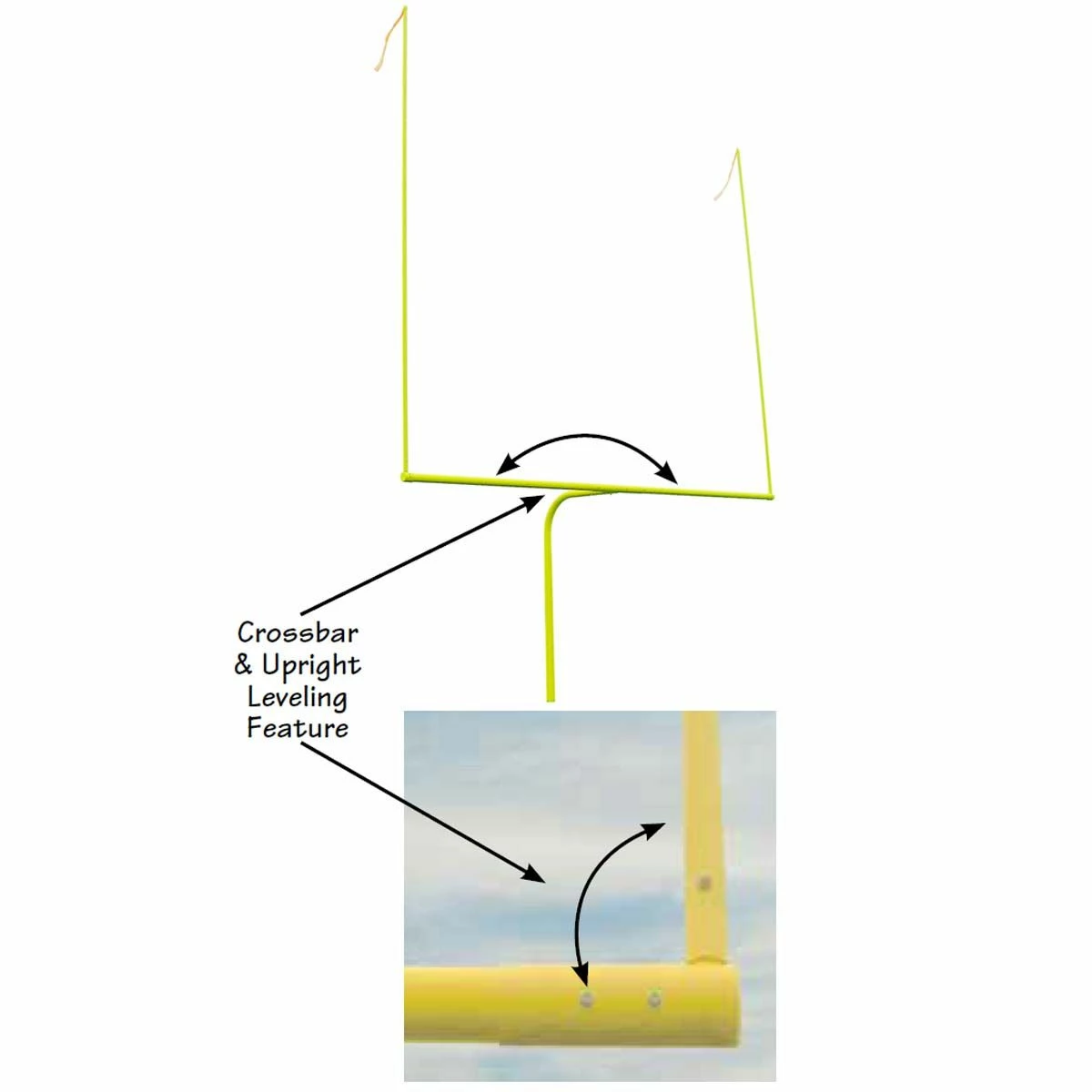 The All Star football goal post from First Team is an exceptionally sturdy and budget-friendly system for high school or college play. This post features a 4 1/2β diameter aluminum crossbar and 2 3/8β diameter aluminum uprights that attach to the 4 1/2β diameter steel post, which is finished with a galvanized undercoat for rust-free protection. Several features make setting up this goal post one of the easiest in the industry, including the telescoping nosecone that allows the overhang distance to extend anywhere from 6′ to 6β 6β to ensure the crossbar is even with the back of the endzone. Each 20′ upright is attached to a fully rotational corner elbow to allow the uprights to be assembled in a straight manner every time. This goal post comes in two sizes: 23′ 4″ high school level crossbar or 18′ 6β college level crossbar. See βAdditional Infoβ tab for installation instructions and diagrams.