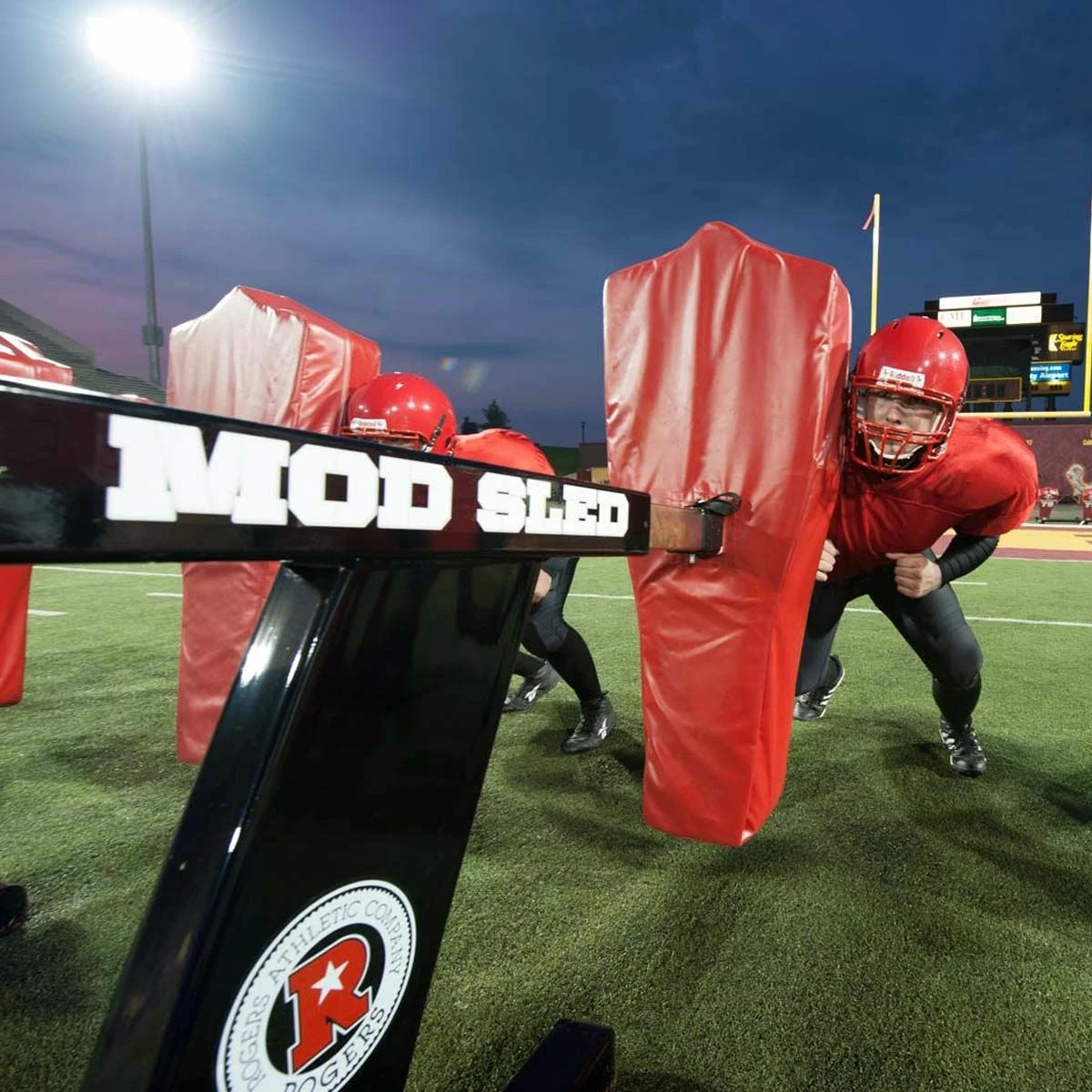 The Rogers Mod sled is the coach’s choice for winning high school & college teams. Β The life-like spring action causes the pad to “fight back” as the sled is driven. Developing a good football position is a must in order to compress the spring and drive the sled