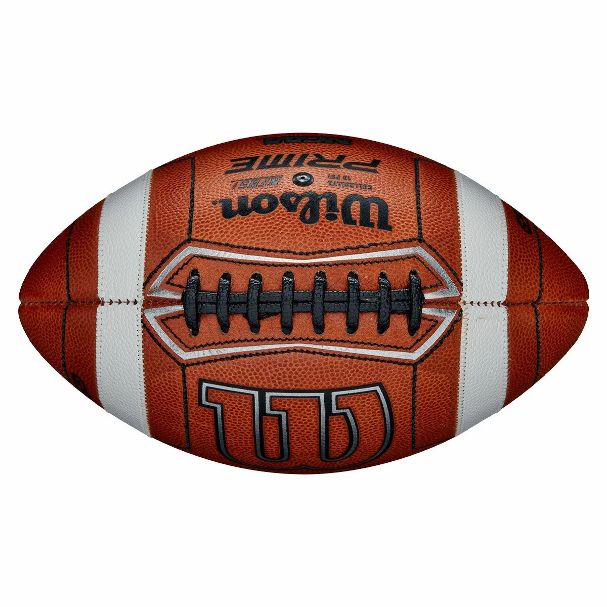 The Wilson GST Prime NCAA official leather game football is an excellent ball approved for NFHS and NCAA play. Featuring index and middle finger stitching, this football provides QBs with better feel and βflickβ when releasing and more ball security while handling/throwing. Patented sewn-on stripes are made of composite material instead of paint, providing 82% more grip for more accurate throws. Wilsonβs Light Leather Formula is the softest football leather on the market, making a unique feel thatβs easier for your fingers to sink into for more control. Accurate Control Lacing (ACL), which is pebbled instead of smooth, provides QBs with 174% more grip in all conditions.